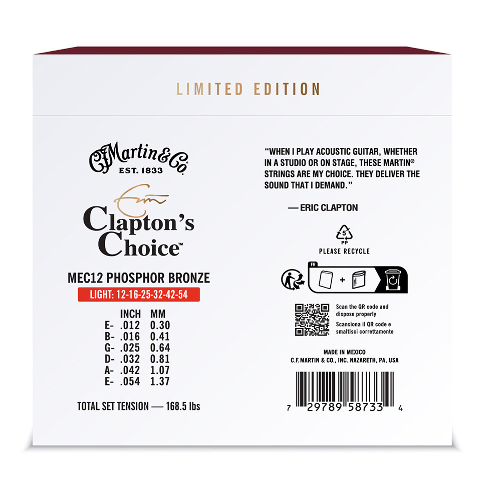 20 éven át a Clapton’s Choice akusztikus gitárhúrok biztosítják azt a legendás hangzást, amelyre Eric Clapton minden alkalommal számíthat. A Martin Guitarral való több évtizedes együttműködésének megünneplésére limitált kiadású jubileumi csomagot mutatunk be, amely 2026 márciusáig kapható. Ezek a 92/8 foszfor-bronz húrok meleg, gazdag hangzást és könnyed kezelhetőséget biztosítanak, ezért Eric első számú választásaivá váltak.