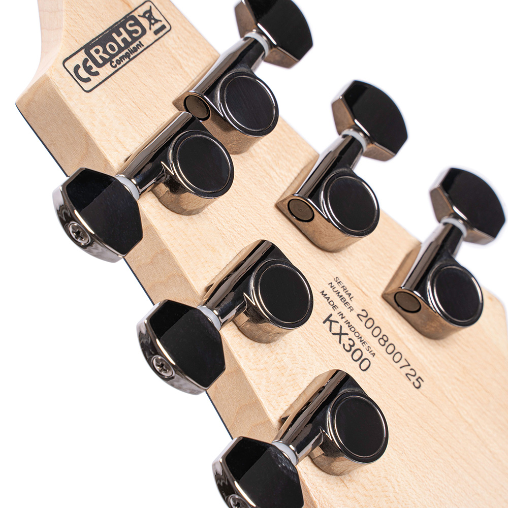 A KX300 modell a KX szériát új magasságokba emeli. Mahagóni testtel, mintás juhar tetővel rendelkezik és a klasszikus zebra nyílt tekercses EMG® RetroActive Super77 dual humbucker hangszedőkkel szerelték.