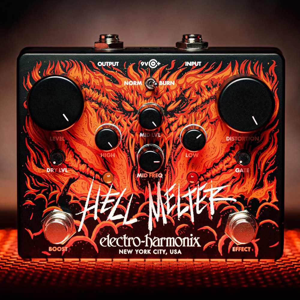 A kult-klasszikus chainsaw distortion újragondolásával az EHX Hell Melter a torzítást az extremitásig viszi el. Kiterjesztett vezérlőfelülettel és hangzással rendelkezik, így a már eleve arconcsapós soundot tágítja azzal, hogy több vágás és boost lehetőséget ad a megnövel headroom, kevesebb kompresszió és több attack érdekében.