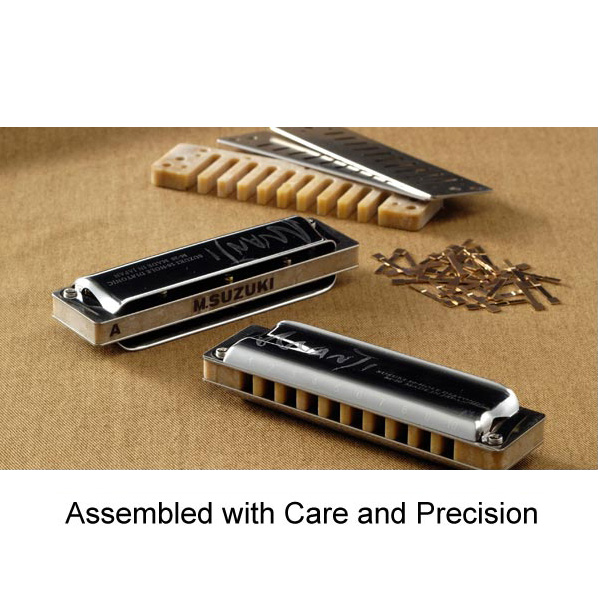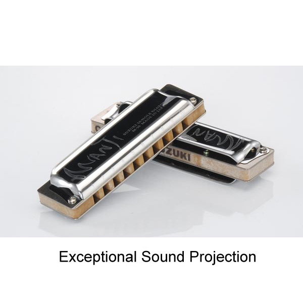 A Suzuki Manji egy forradalmian új, "kompozit" testtel készül, amellyel hangtónusa abszolút megegyezik a tradicionális fa testtel készült szájharmonikák hangtónusával, de nem lép reakcióba a nedvességgel. Óriási hangereje egyedülálló. Rendkívül precíz, könnyen kezelhető, professzionális, 10 hanglyukú, egysoros, diatonikus, dúr-hangolású szájharmonika.